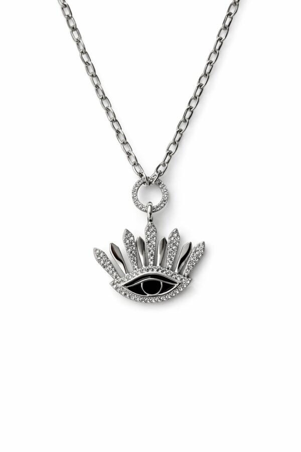 Gümüş Renk Xuping Zirkon Taşlı Göz Figürlü Zincir Kolye (38 cm+5 cm İlaveli Zincir)