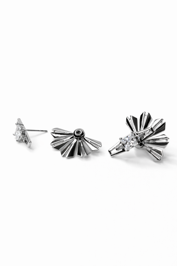 Modern Geometrik Gümüş Renk Kanat Form Arka Kapamalı Xuping Taşlı Küpe