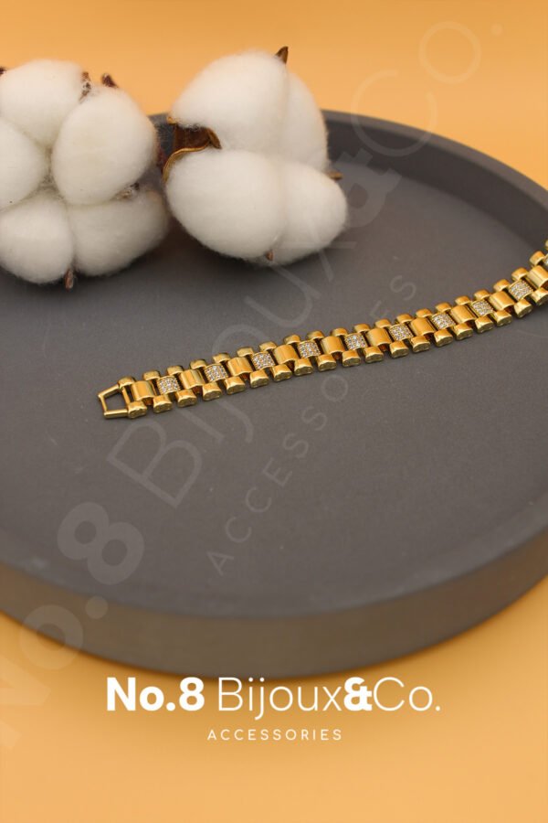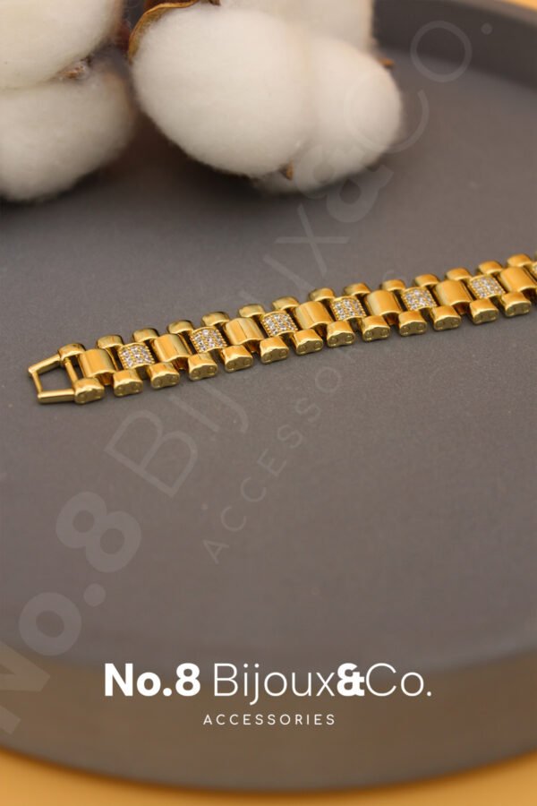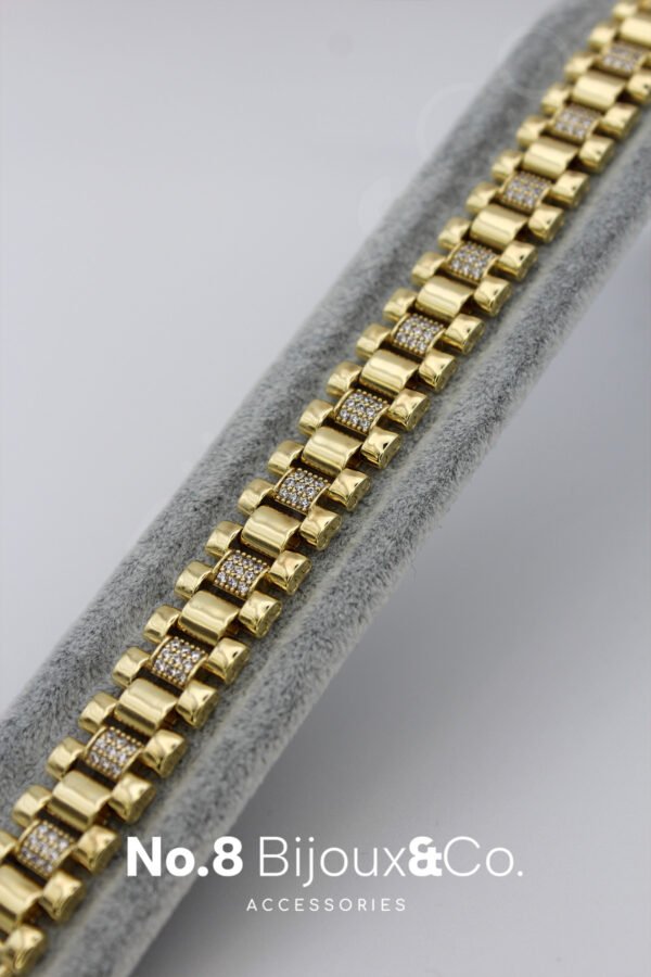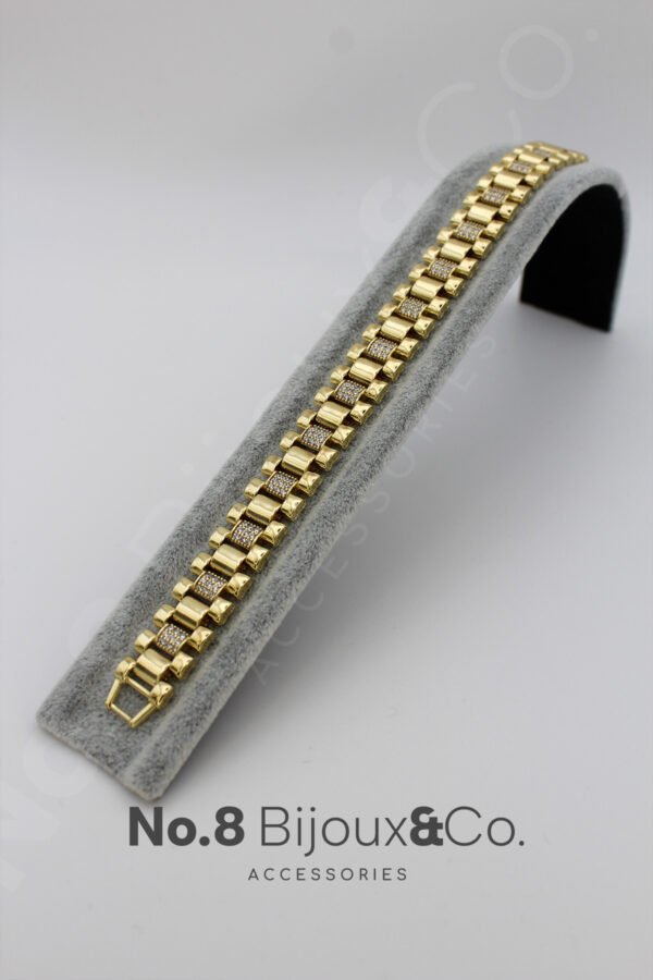 Xuping 14K Altın Rengi Mikro Zirkonlu Geniş Örgü Zincir Bileklik (19,5 cm)