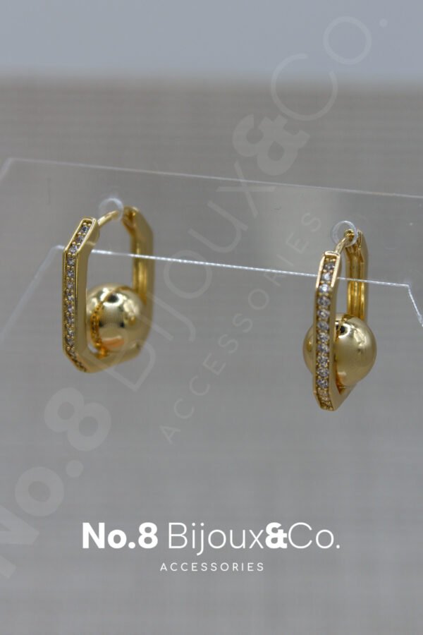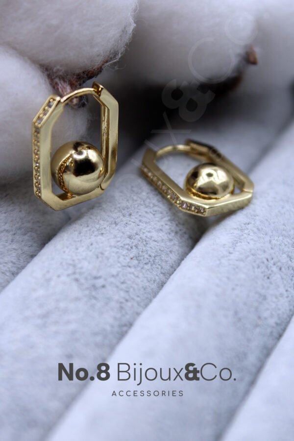 Xuping 14K Altın Rengi Geometrik Küre Detaylı Taşlı Modern Halkalı Kadın Küpe