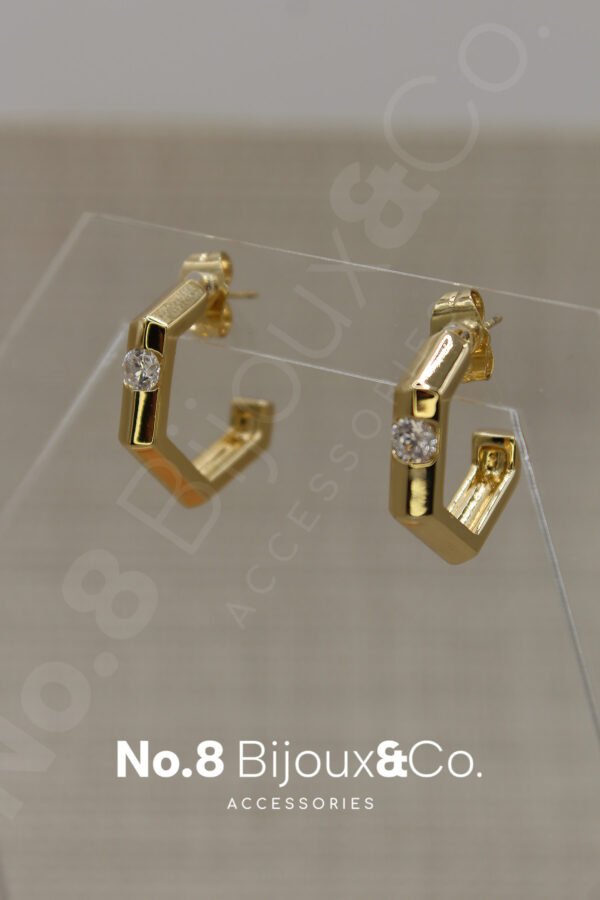 Xuping 14K Altın Rengi Zarif Tek Taş Detaylı Köşeli Halka Küpe