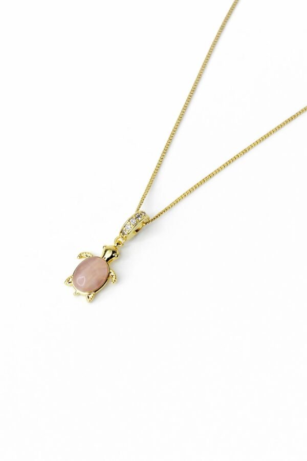 Xuping Altın Renk Pembe Doğal Taş Detaylı Kaplumbağa Kolye (43 cm Zincir)