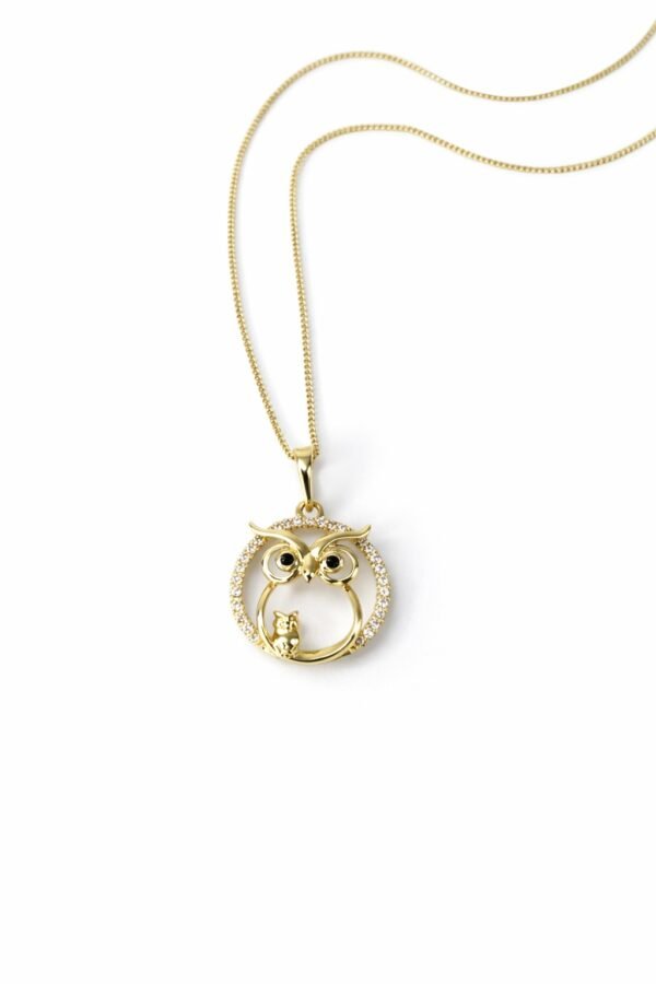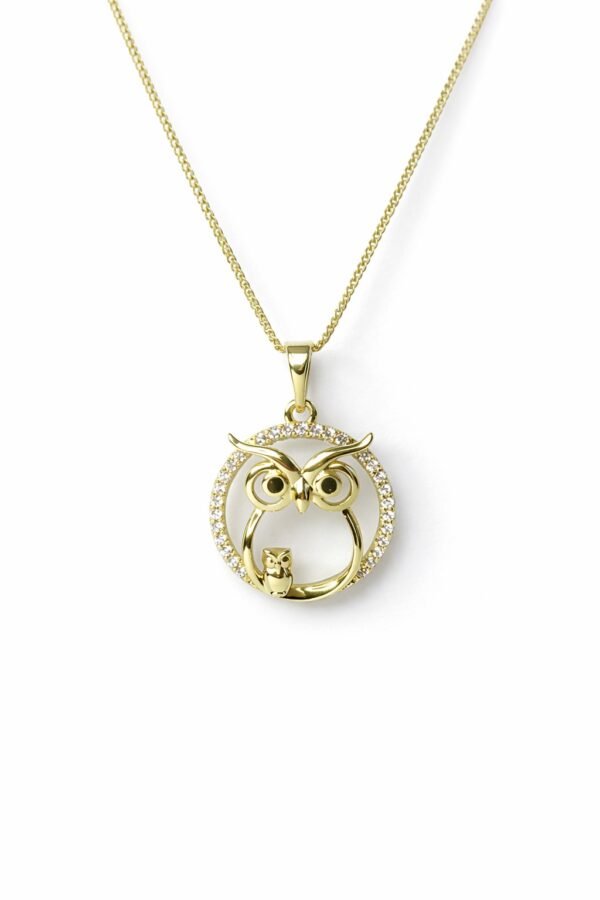 Xuping Altın Renk Yuvarlak Çerçeveli Zirkon Taşlı Baykuş Kolye (43 cm Zincir)