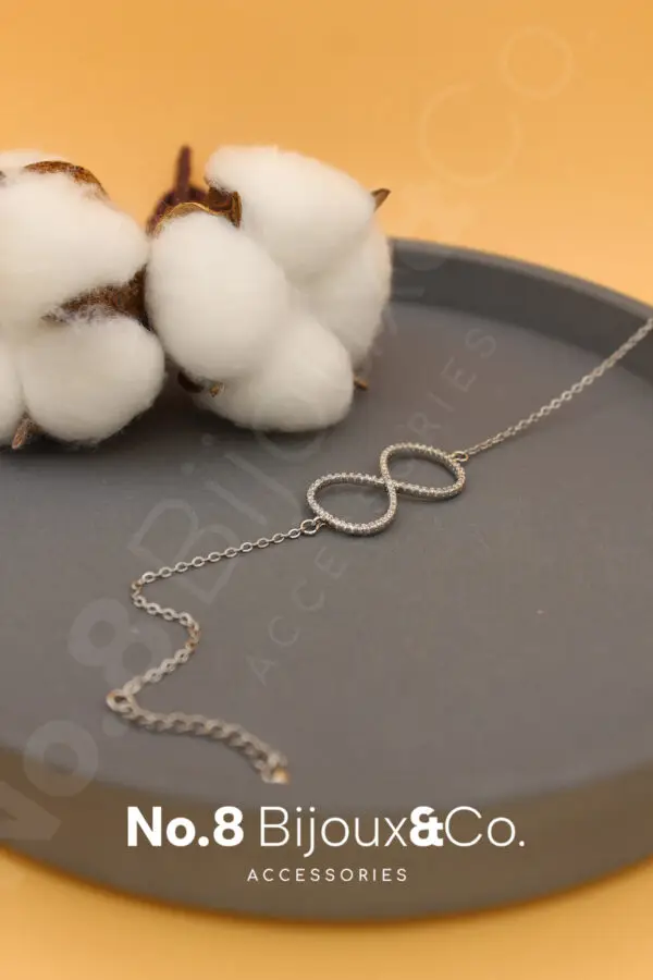 Xuping’in zarif tasarım anlayışıyla üretilen bu sonsuzluk figürlü bileklik, ışıltılı zirkon taşlarıyla zamansız bir şıklık sunar. Beyaz altın tonlu görünümüyle klasik zarafeti modern bir dokunuşla buluşturur. Bileklik, No.8 Bijoux&Co. markasının ismindeki “8” karakteriyle benzer formda, sonsuzluk ve süreklilik kavramlarını temsil eder. Tıpkı markamızın adındaki anlam gibi, bu tasarım da zarafetin ve ışıltının hiç bitmeyen bir döngüsünü simgeler. Ayarlanabilir zinciri sayesinde farklı bilek ölçülerine uyum sağlar; günlük kombinlerde zarif bir dokunuş, özel davetlerde ise anlamlı bir parıltı sunar.