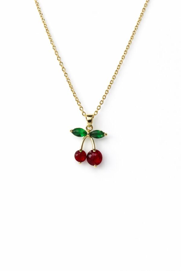 Xuping Renkli Taş Detaylı Kiraz Figürlü Zincir Kolye (46 cm+5 cm Zincir)