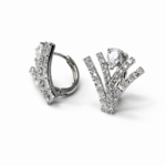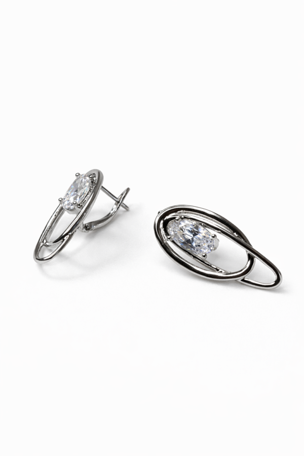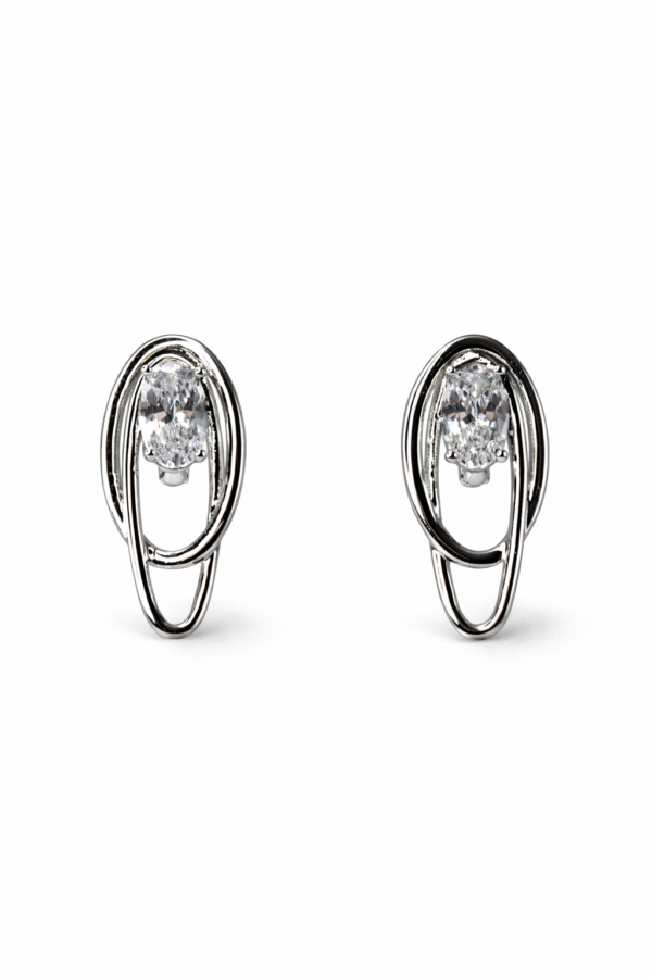 Akışkan Oval Hatlı Gümüş Renk Taş Detaylı Küpe