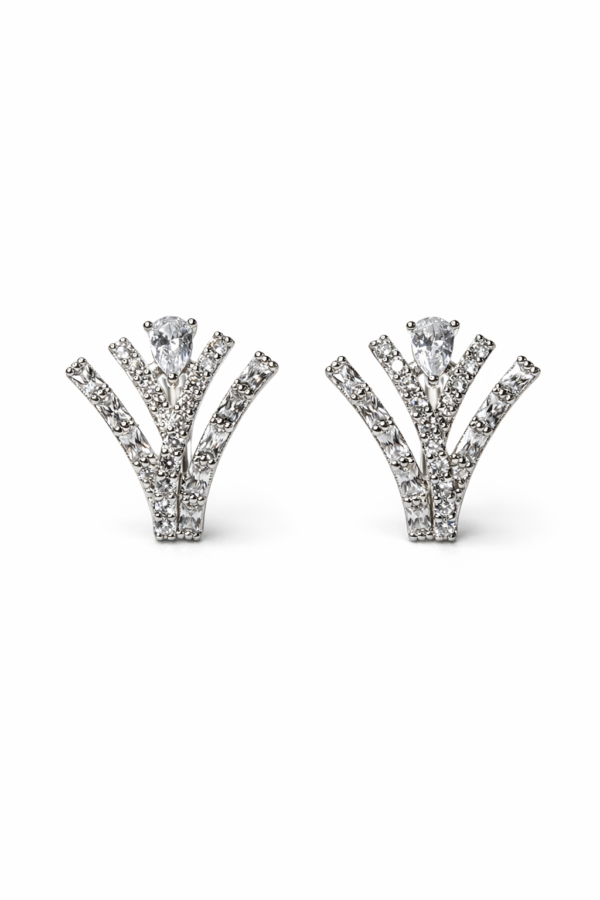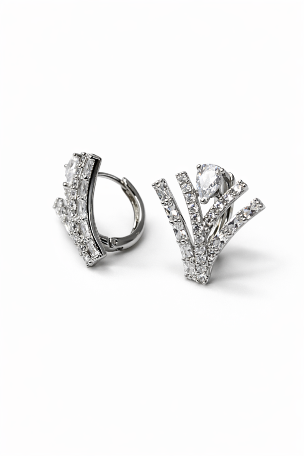 Gümüş Renk V Kesim Özel Tasarım Taş Detaylı Küpe