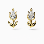 İnci ve Taş Detaylı Gümüş Renk Çiçek Küpe