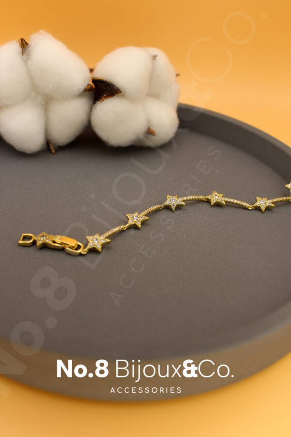 Xuping 14K Altın Görünümlü Yıldız Figürlü Pavé Taşlı Şık Bileklik (18+2 Cm Ek Parçalı)