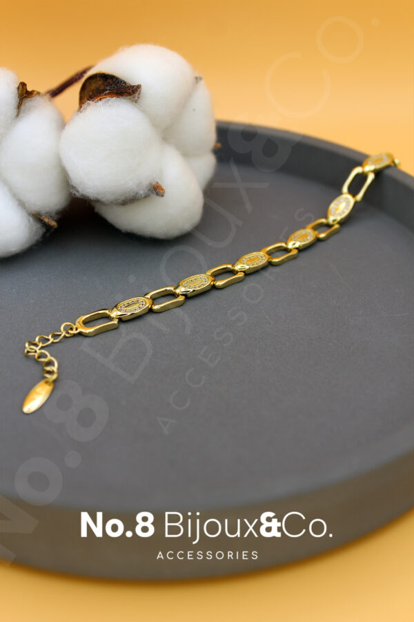 Xuping 14K Altın Görünümlü Oval Taş Detaylı Modern Zincir Bileklik (17+2,5 Cm Ayarlanabilir)