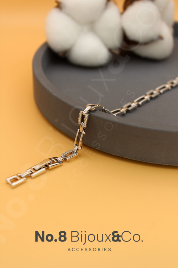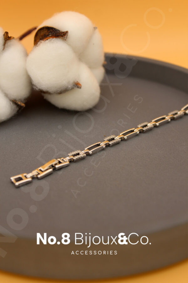 Xuping Beyaz Altın Görünümlü Taşlı Geometrik Bağlantı Zincir Bileklik (17,5 + 2 Cm Ayarlanabilir)