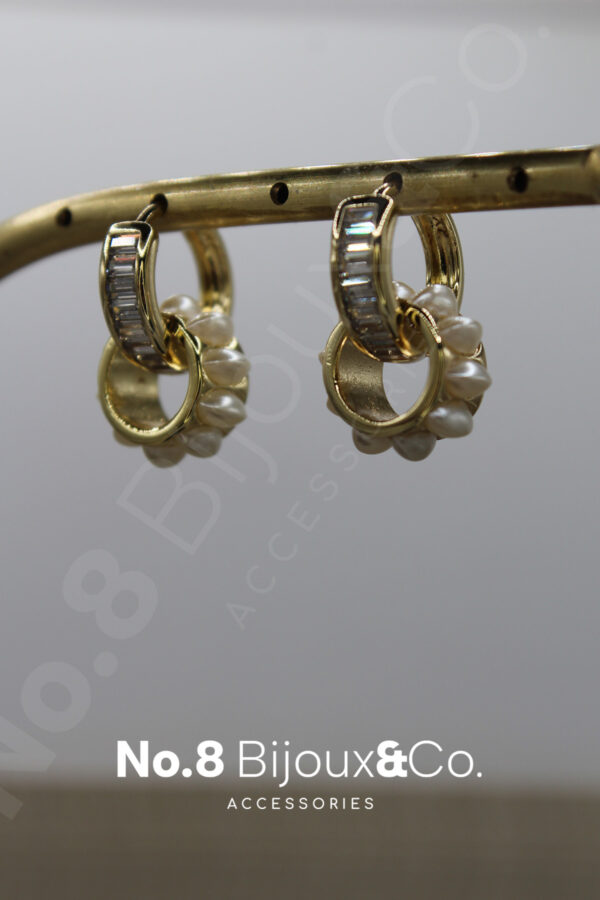 Xuping 14k Altın Rengi Halkalı İnci & Baget Taşlı Çift Stil Kullanımlı Tasarım Küpe