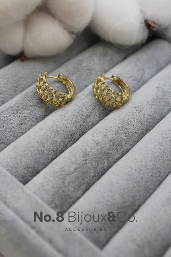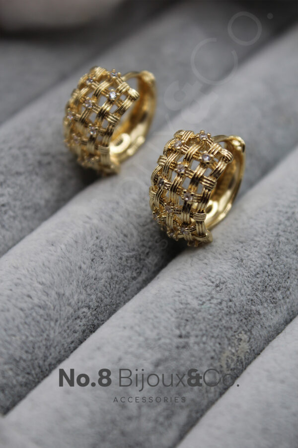 Xuping 14K Altın Rengi Örgü Formlu Mini Taşlı Geniş Halka Küpe