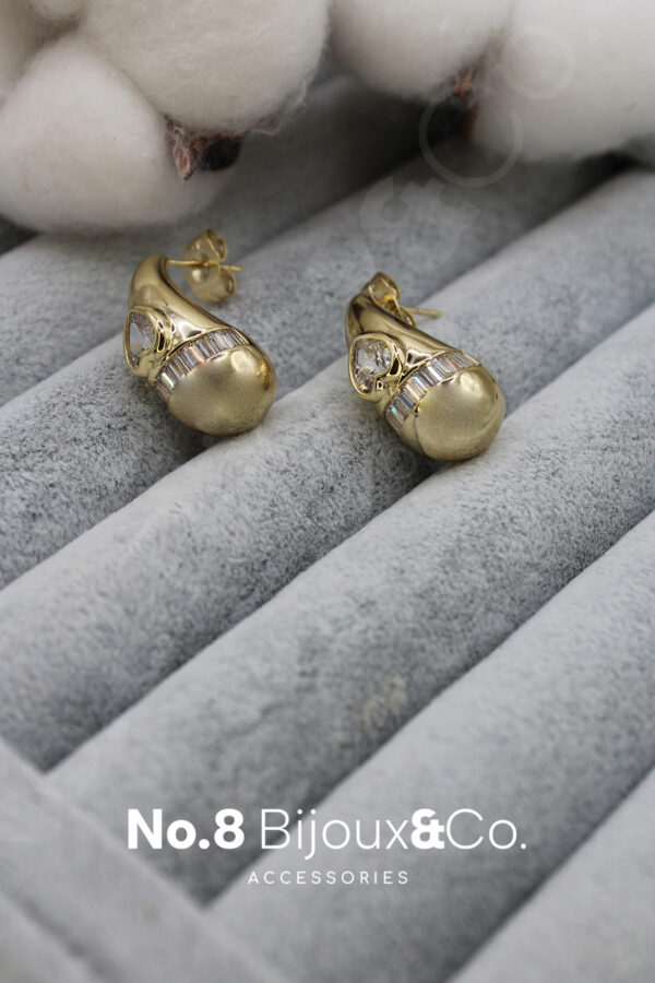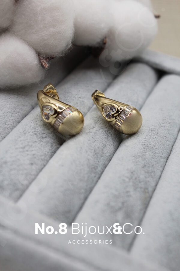 Xuping 14K Altın Rengi Zarif Damla Model Baget ve Kalp Form Kesim Taşlı Küpe