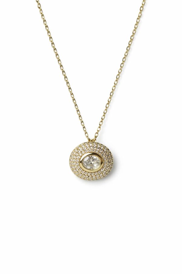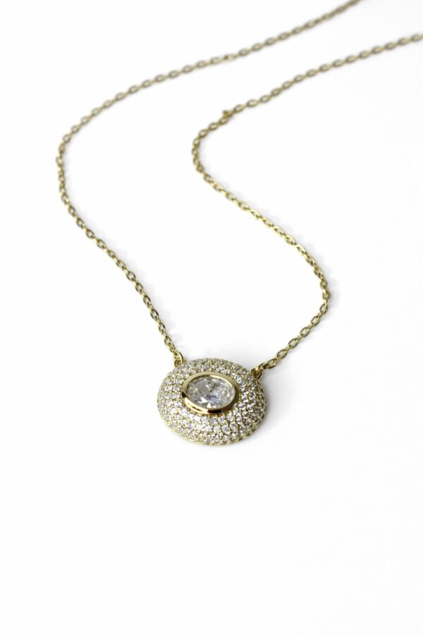 Xuping Altın Renk Yuvarlak Zirkon Taşlı Madalyon Kolye (42 cm+5 cm İlaveli Zincir)